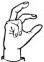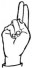 На ћирилици написано ЛАРА КАЗИМИРОВИЋ састоји се из 15 слова [?]. Исписано ћириличном једноручном азбуком за глувонеме: